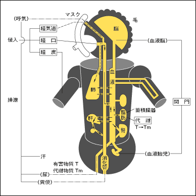 | 【図6】作業者の有機溶剤の吸収と排泄(Ogata,1987) |