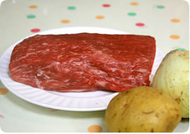 1cmに輪切りした玉ねぎは、肉を蒸し焼きにするときに使います。
