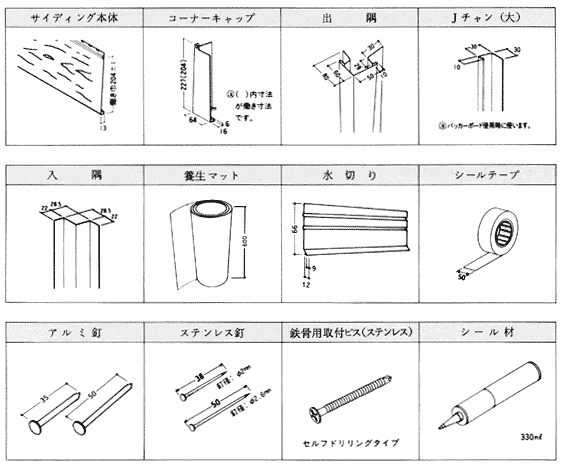 図31にカラーアルミサイディング工事に使用される代表部品図を示す。