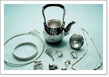 | 銀製のブローチやネクタイピン、スプーン・フォーク、ゴブレットなどが、しばらく使わないうちに黒ずんでしまった、という経験をした人も多いのではないでしょうか。 落ち着きと上品さを兼ね備えた銀製品の魅力は、つややかなシルバーメタリックの輝きがあってこそ。そんな銀製品の美しさを台無しにする黒ずみを簡単に解消し、もとの輝きを取り戻す方法をご紹介しましょう。 |