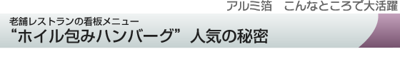 アルミ箔の世界 HOME > アルミ箔こんな所で大活躍 >こぼれ話・耳より情報:"ホイル包みハンバーグ"人気の秘密