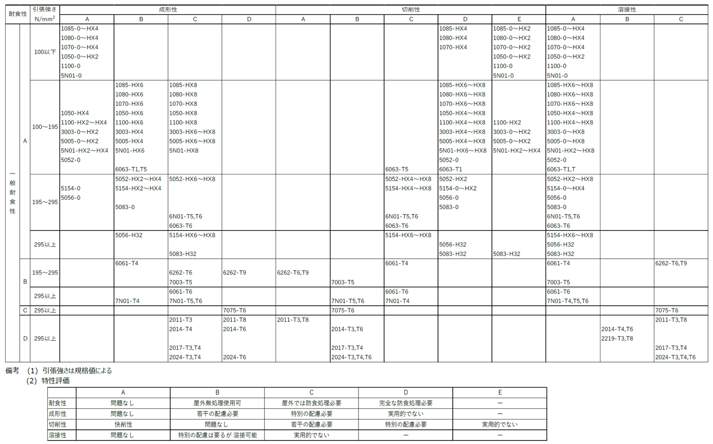 ここでの説明より更に詳しい内容および具体的で詳細な技術データをお知りになりたい場合は、「アルミニウムハンドブック第8版」をご購入されることをお勧めいたします。